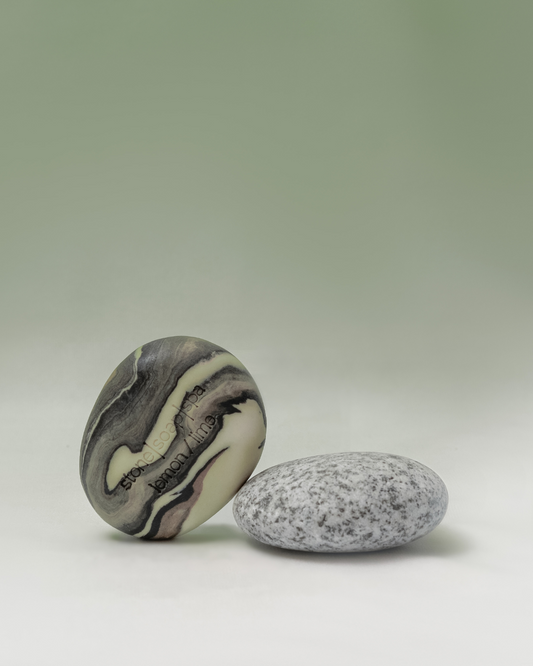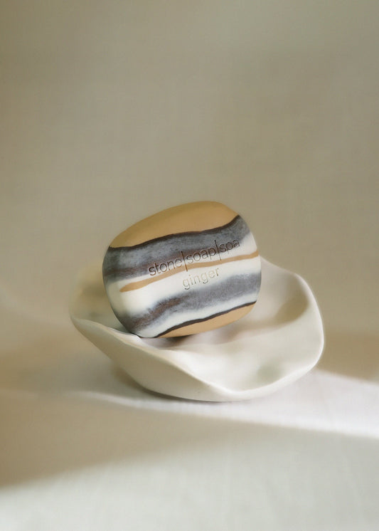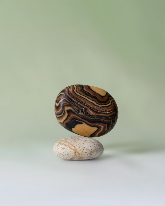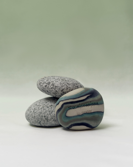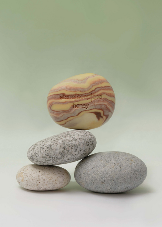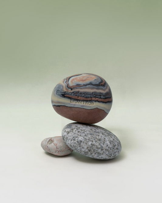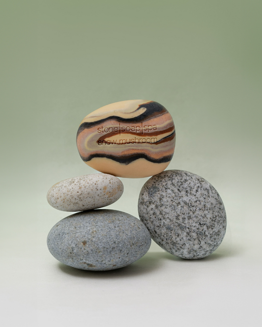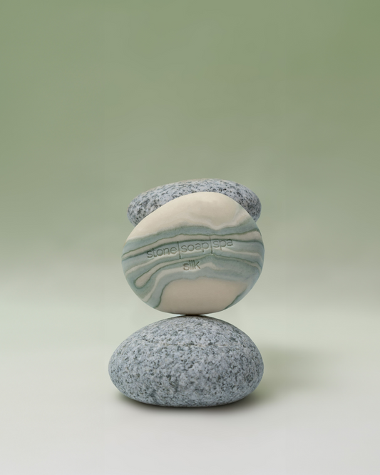 鵝卵石香氛輕柔磨砂皂,是Stone Soap Spa 的經典之作。設計靈感源自於挪威的冰河、森林與海岸線中的一塊塊小小石頭,搭配淡雅色彩與溫潤流動的線條層次,體現了挪威靜謐的大自然原始魅力。