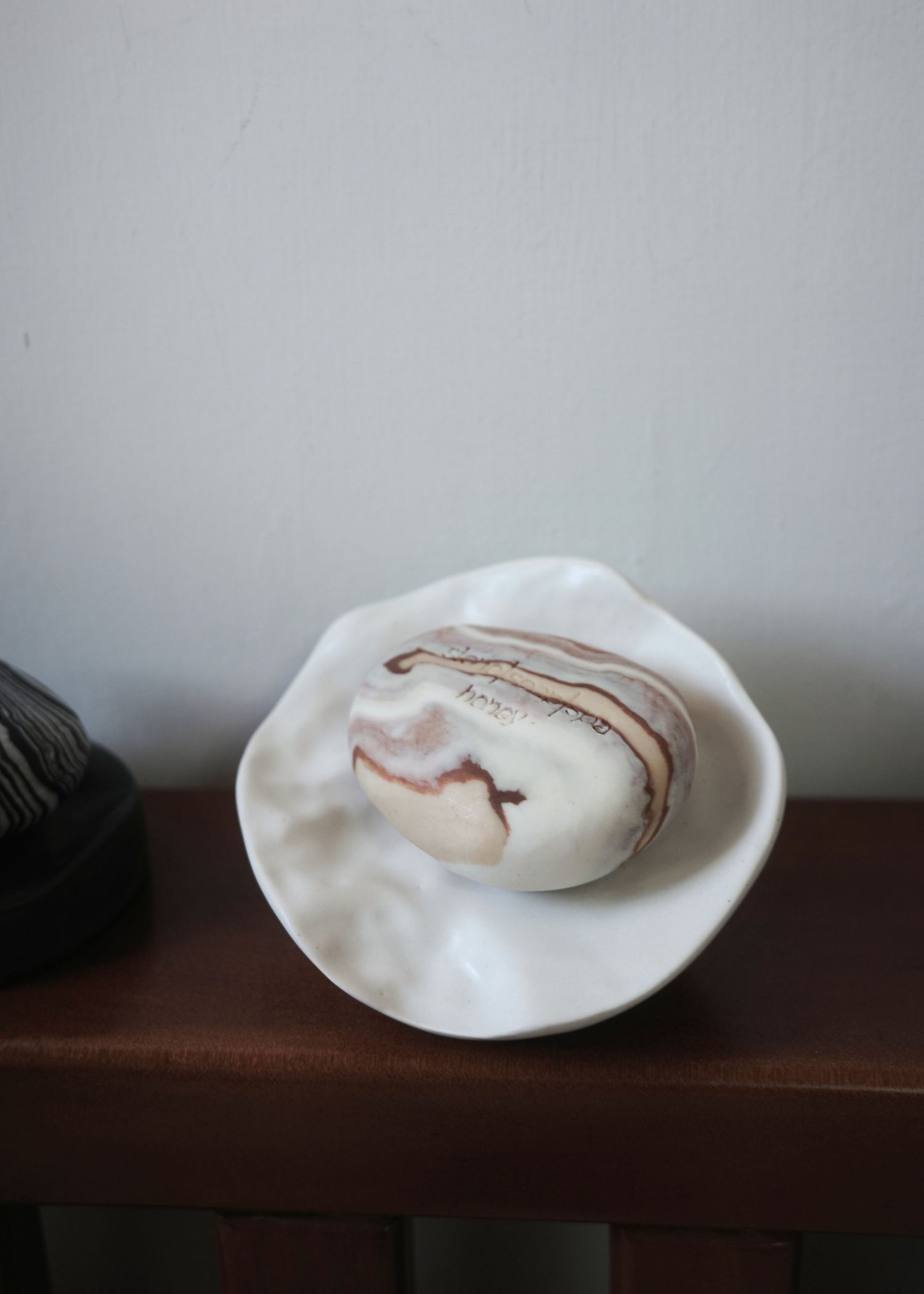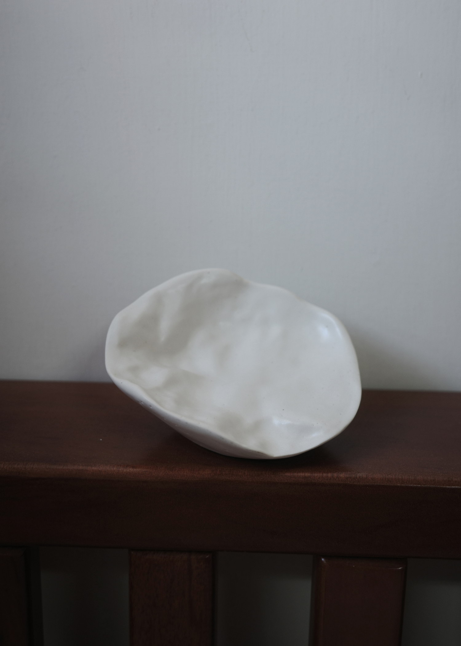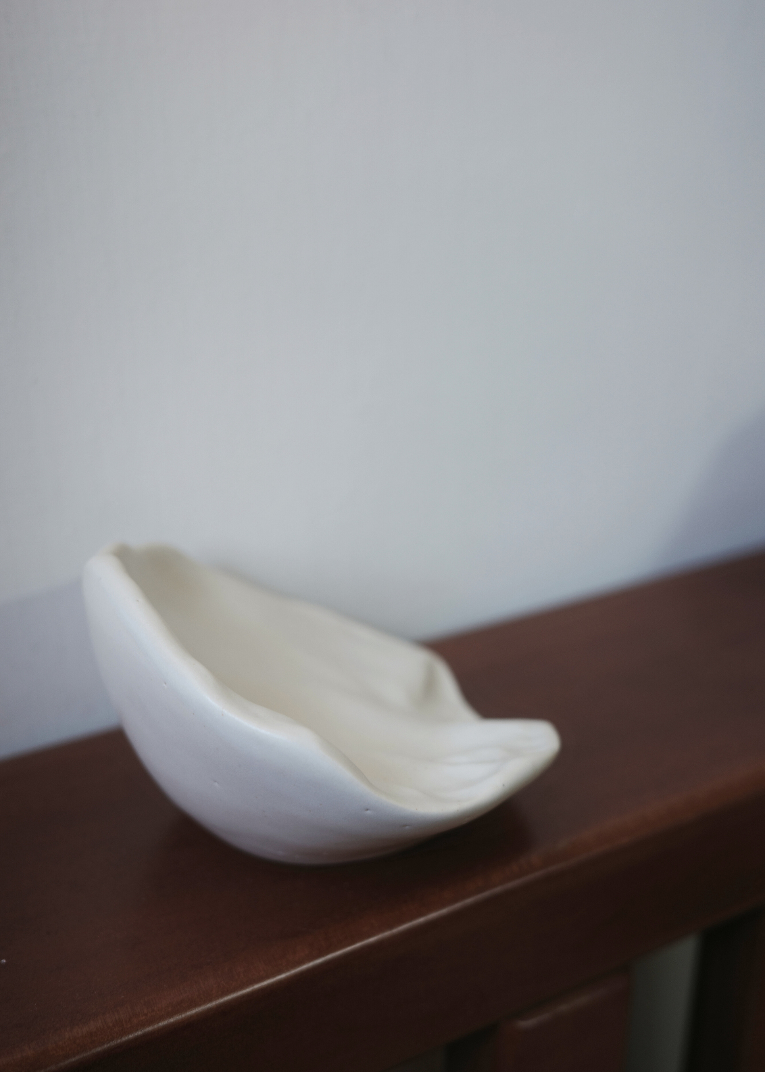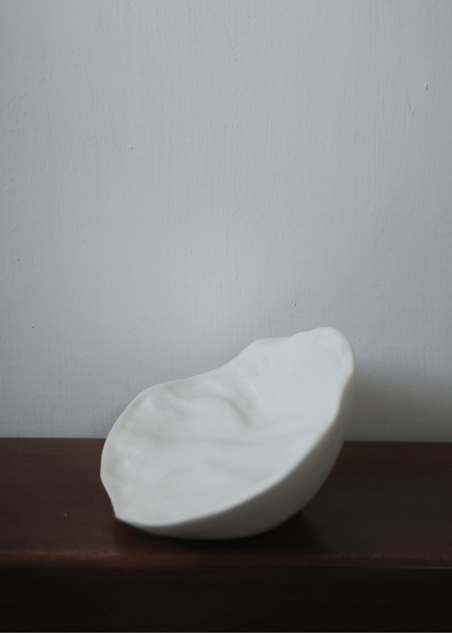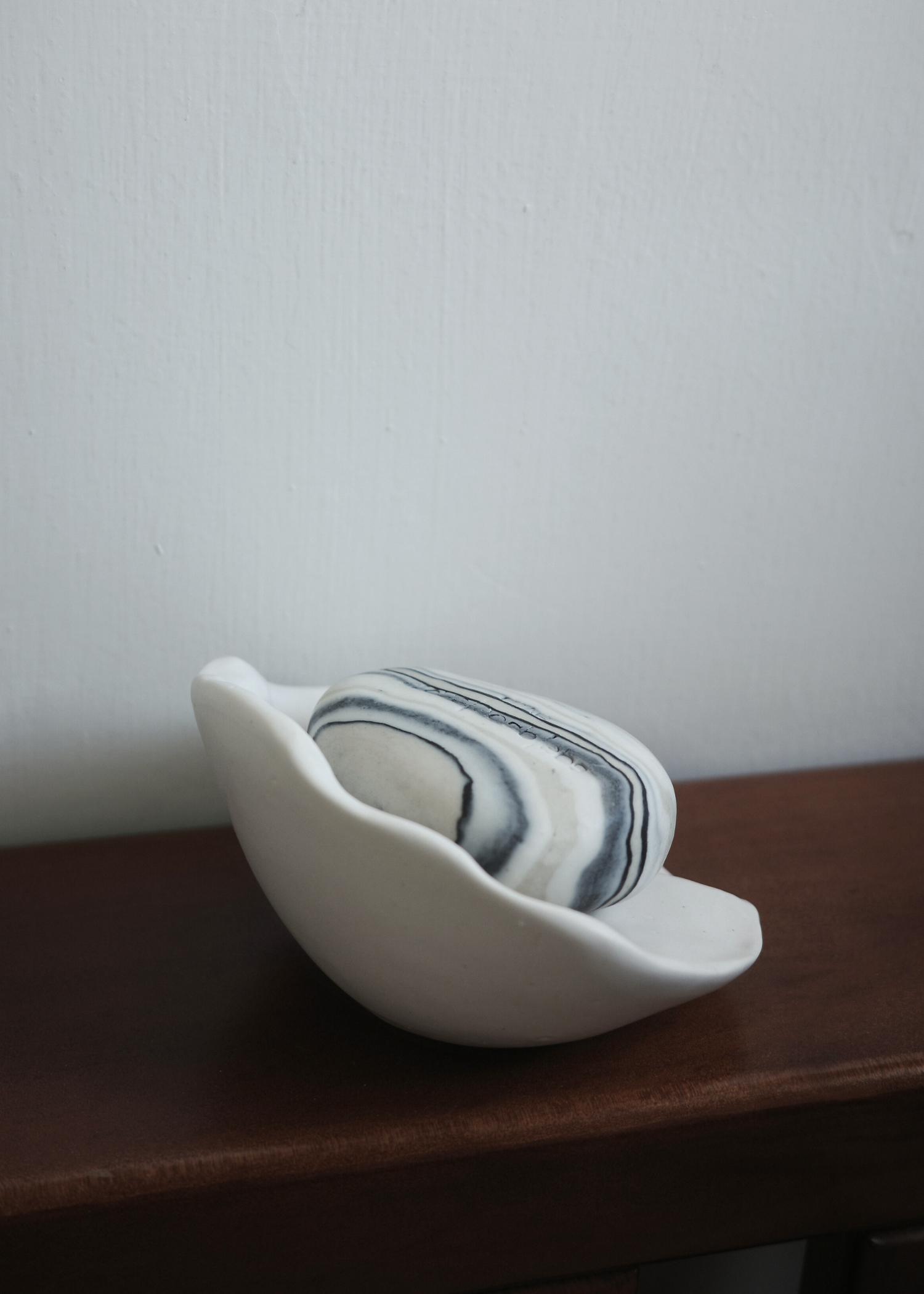 【Carapace 殼 - 擺皂碟】是一片乳白色陶瓷品,如同大海輕柔沖刷後在沙灘上留下的貝殼,溫柔而富有詩意。